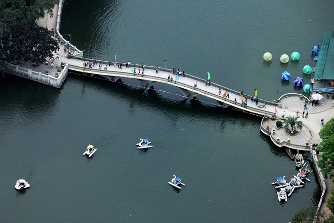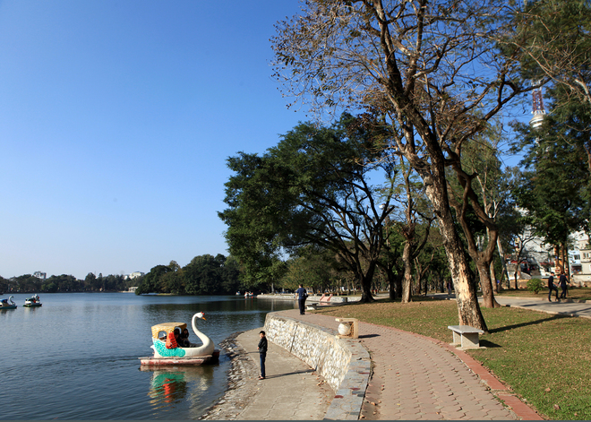 | ពុះជាពីរដោយ វិថី Thanh Nien ទោះបីជាបឹងតូចក៏ដោយ ប៉ុន្តែបឹង Truc Bach នៅទាក់ទាញមនុស្សម្នាមកអង្គុយលេងកំសាន្តញុំចំណីនិងជិះកងទឹកកំសាន្ត។ |