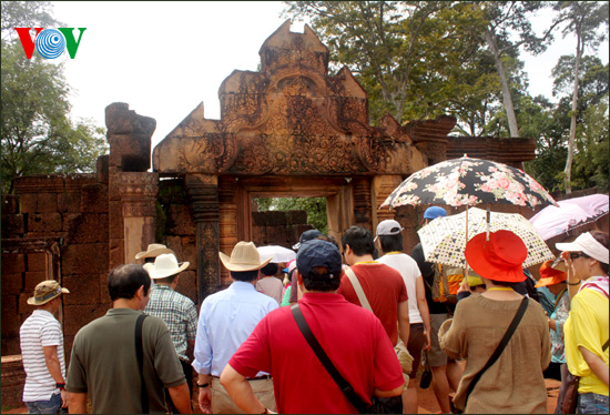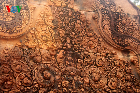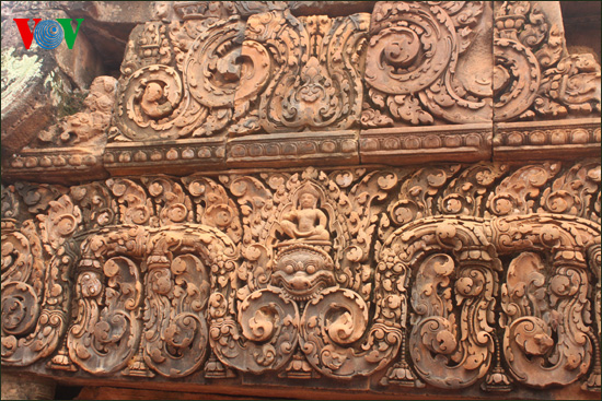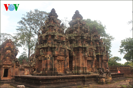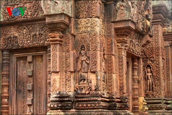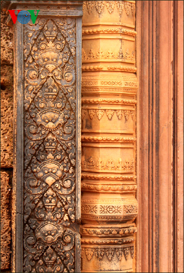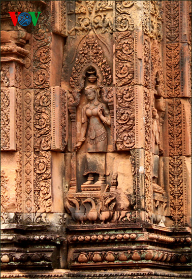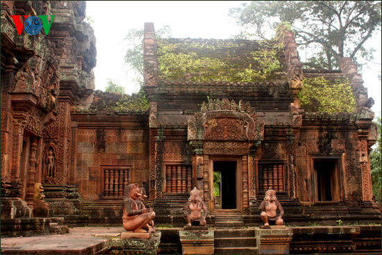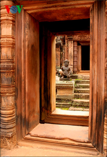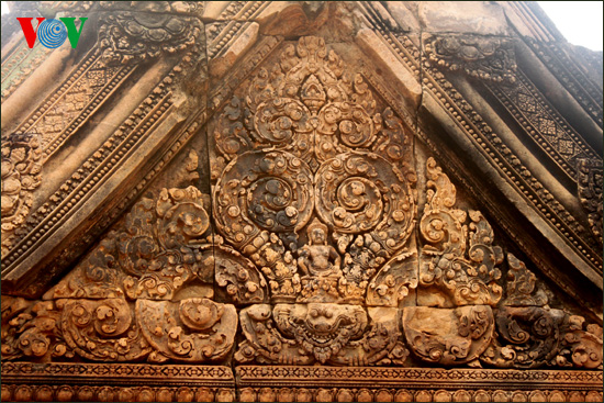 ប្រាសាទបន្ទាយស្រីមានឈ្មោះល្បី ព្រោះវាត្រូវបានសាងសង់ឡើងពីថ្មផ្កាឈូក