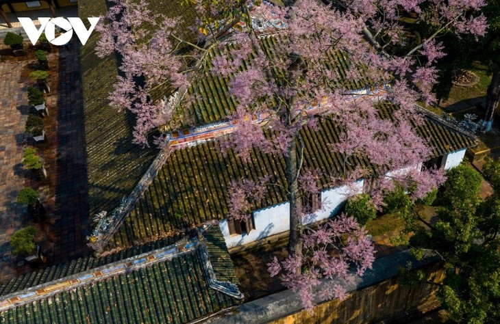 សម្រស់ស្អាតនៃផ្កាប្រទាលល្ហុង បានតាក់តែងសម្រាប់ស្ថាបត្យកម្មដ៏ពិសេសនិងប្រណិតនៃកេរ្តិ៍ដំណែលអតីតរាជធានី Hue។