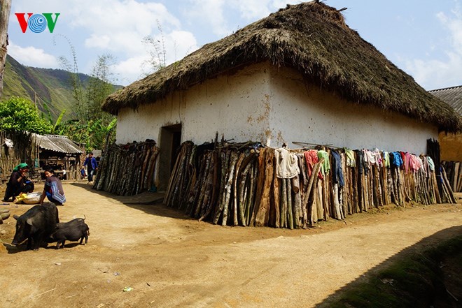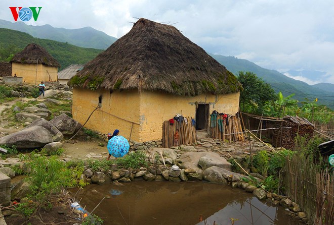 | បណ្ដាផ្ទះវិសេសវិសាលរបស់ជនជាតិ Ha Nhi ស្ថិតលើខឿនដី ជញ្ជាំងបានធ្វើដោយដីនិងដំបូលប្រក់ស្មៅ |