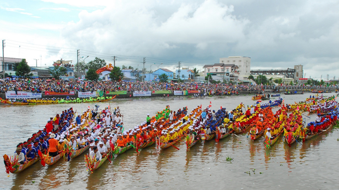 (VOVworld)-ជនជាតិខ្មែរ Nam Bo និយាយរួមនិងជន ជាតិខ្មែរនៅខេត្ត Soc Trang និយាយដោយឡែកមាន ទំនៀមទម្លាប់ប្រណាំងទូក ង ដែលជារៀងរាល់ ឆ្នាំ ត្រូវបានរៀបចំឡើងនៅខែ ១០តាមច័ន្ទគតិ ដែលផ្សា ភ្ជាប់ជាមួយនឹងពិធីបុណ្យ អកអំបុករបស់ជនជាតិខ្មែរ។នេះត្រូវបានចាត់ ទុកជាពិធីដង្ហែទឹកជាលក្ខណៈប្រពៃ ណីរបស់កសិករ ធ្វើស្រែនៅតំបន់ត្រូវ លិចទឹក។ ពិធីបុណ្យក៏បង្ហាញពីបំណង ប្រាថ្នាទទួលបានរដូវធ្វើស្រែចំការ មួយអំណោយផលរបស់ជនជាតិខ្មែរផងដែរ។