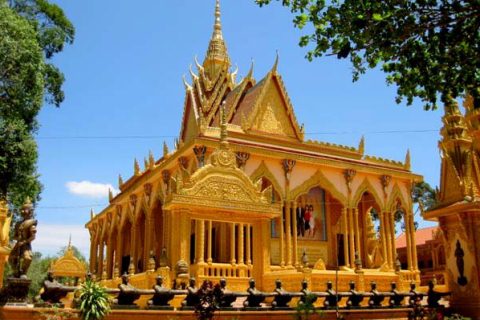 (VOVworld)-មកដល់ជាមួយជនរួមជាតិខ្មែរដែលរស់ នៅតំបន់វាលទំនាប ទន្លេ Cuu Long ការទាក់ទាញ ចំណាប់អារម្មណ៍បំផុតរបស់អ្នកទស្សនាគឺដំបូលវត្ត កោងៗដែលភាគច្រើនស្ថិតនៅក្រោមដើមធ្នោត។ នៅតំបន់ជនរួមជាតិខ្មែររស់នៅ មានវត្តចំនួន៦០០ដែលវត្តនីមួយៗ ពោរពេញទៅដោយលក្ខណៈស្ថាប័ត្យកម្ម វិសេសវិសាលរបស់ជនរួម ជាតិ ដោយរួមចំណែកបង្កើតឡើងបរិយាកាសពិសិទ្ធិអំពីវប្បធម៌ភាគ ខាងត្បូងវៀតណាម។
