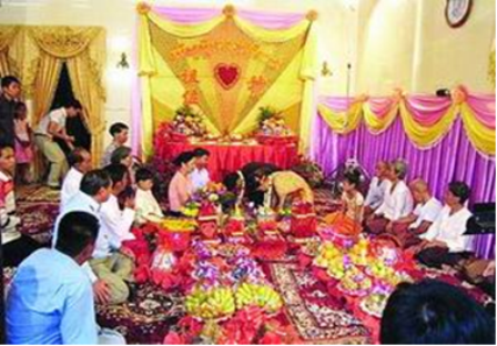 (VOVworld)- ចំពោះជនជាតិខ្មែរ ពិធីរៀបអាពាហ៍ ពិពាហ៍ជាព្រឹត្តិការណ៍សំខាន់ បំផុតសម្រាប់ជីវិត ពួកគេម្នាក់ៗ។ ពីមុនឪពុកម្ដាយជាអ្នកទុកដាក់កូន ចៅឲ្យមាន គូស្រករ ប៉ុន្ដែបច្ចុប្បន្ននេះយុវជន យុវតី ខ្មែរភាគច្រើនមានសេរីភាពក្នុងការជ្រើស រើសគូស្រកររបស់ខ្លួន និងធ្វើ ការស្វែងយល់ចិត្តគ្នា មុននឹងឈានដល់ការរៀប អាពាហ៍ពិពាហ៍។ពិធី រៀបអាពាហ៍ពិពាហ៍ខ្មែរជាពិធីប្រពៃណីមួយដែលតម្រូវឲ្យមានកម្មវិធីជា ច្រើនដូចជា សូត្រមន្ដ កាត់សក់់ ចងដៃ ជាដើម។ ពិធីនេះបានបង្ហាញ ពីវប្បធម៌ដ៏ស្រស់ស្អាតរបស់ជនជាតិខ្មែរ។