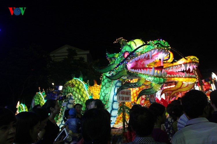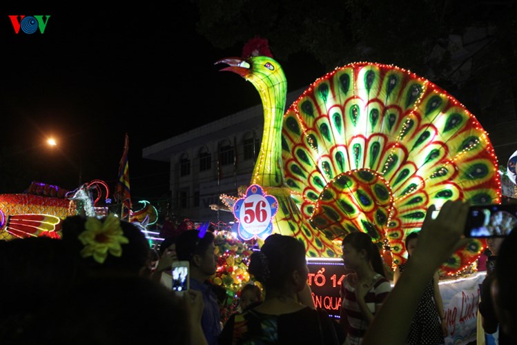 | ភ្លើងគោមចម្រុះពណ៍ចំនួន៩២បានប្រមូលផ្ដុំនៅទីលាន Nguyen Tat Thanh មុនពេលត្រូវបានដង្ហែរតាមដងវិថី។ |