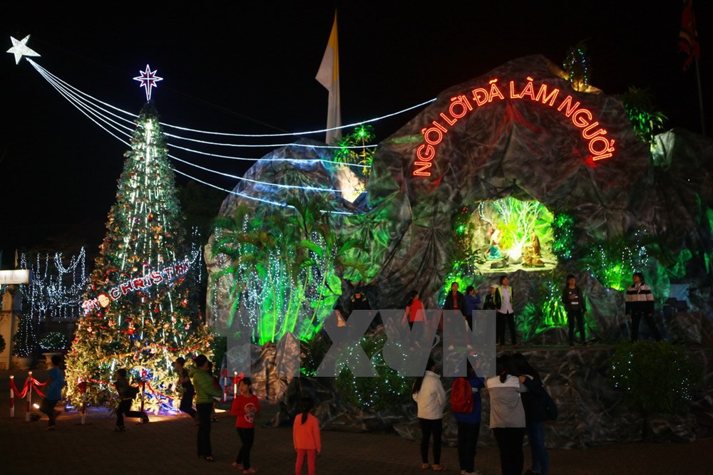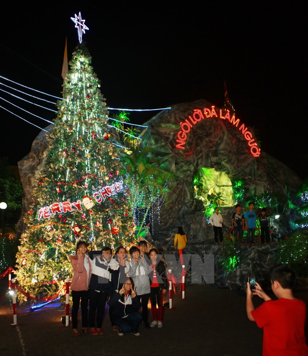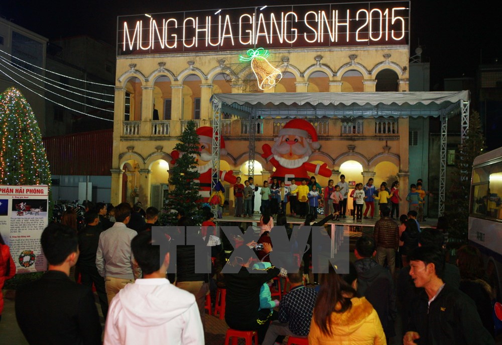 | ប្រជាពលរដ្ឋទីក្រុង Hai Phong សម្របខ្លួនចូលបរិយាកាសបុណ្យណូអែលនៅវិហារ Tan An ខ័ណ្ឌ Le Chan។ |
