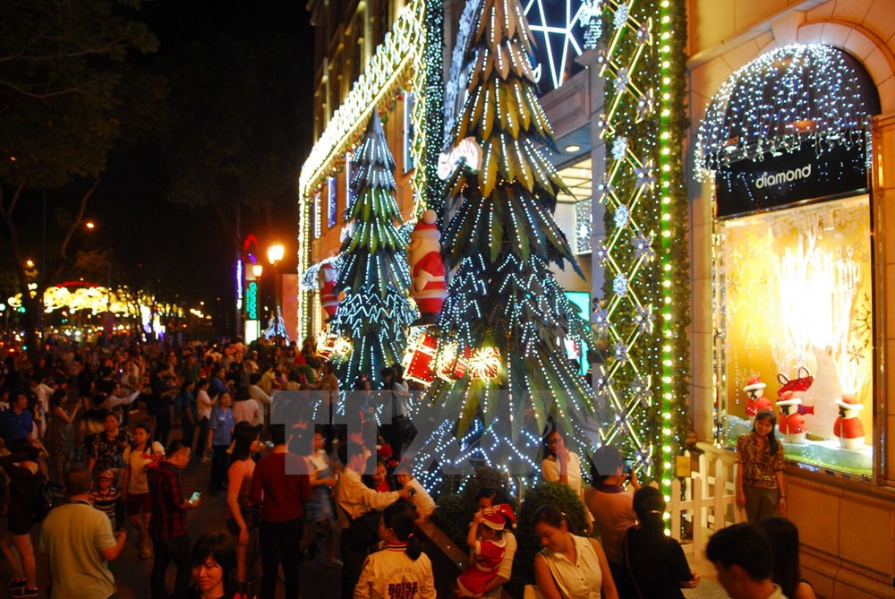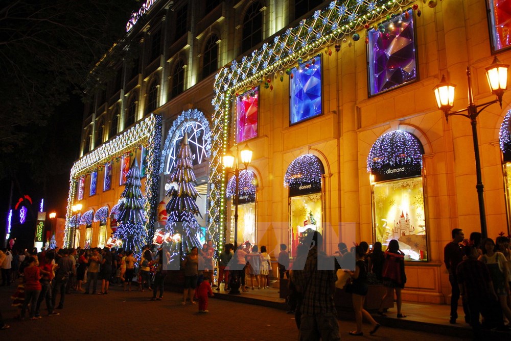 | មជ្ឌមណ្ឌលទីក្រុងហូជីមិញ (ភាគខាងត្បូងវៀតណាម) ត្រូវបានតុបតាំងដោយពន្លឺភ្លើង ចម្រុះ ពណ៌រដើម្បីទទួលបុណ្យណូអែលនិងឆ្នាំថ្មី ២០១៦។ |
