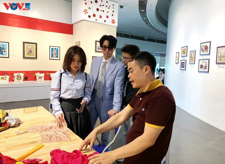 លោក Le Viet Cuong (ខាងស្តាំ) - ប្រធានសមាគមជនពិការ Ha Dong នាយកសហករណ៍ Vun Art បានចែករំលែកថា៖ នេះគឺជាពិព័រណ៍ខ្នាតធំលើកដំបូងរបស់សិប្បករជនពិការនៅVun Art ។