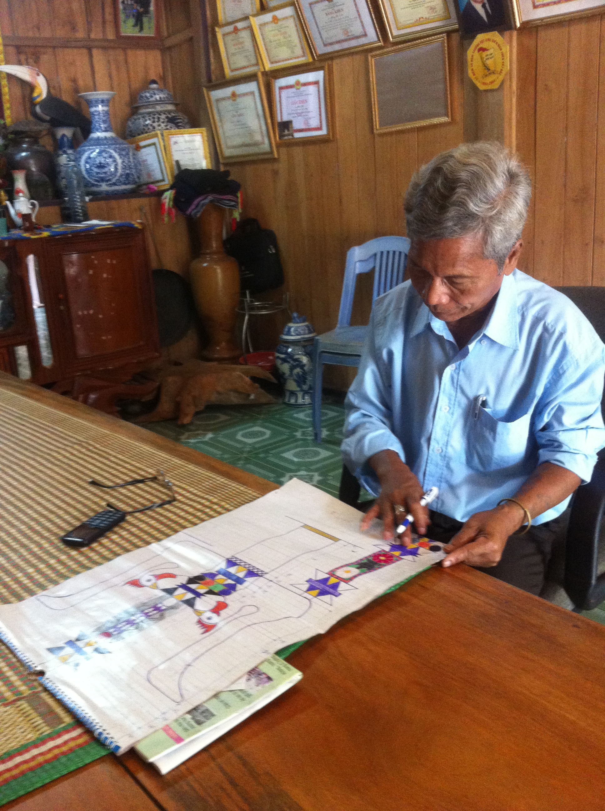 ក្នុងផ្ទះតូចច្រឡឹងមួយខ្នងនៅភូមិ Aroh ឃុំ Lang ស្រុក Tay Giang ព្រឹទ្ធាចារ្យភូមិតា Bh’riu Po បានលៃទុកពេលវេលាជាច្រើនដើម្បីធ្វើការរចនាដើម Neu នៃជនជាតិ Co Tu។ លោកមានកិត្តិយសយ៉ាងខ្លាំងដែលត្រូវបានអ្នកចាស់ទុំក្នុងភូមិជ្រើសតាំងជាមនុស្សតែម្នាក់ គត់ទទួលរ៉ាប់រងការរចនានិងបញ្ជាណែនាំក្រុមសិប្បករលើការងារដំឡើងដើម Neu ជាប្រពៃណីរបស់ជនជាតិ Co Tu ក្នុងមហោស្រពតាំងបង្ហាញដើម Neu ជាលើកដំបូងនៅក្នុងស្រុក។ ចំណែកនីមួយៗនៃដើម Neu នេះត្រូវបានតា Bh’riu Po គិតគូររចនាយ៉ាងហ្មត់ចត់ក្នុងគោលបំណងរក្សាឲ្យខាងតែបាននូវរូបភាពនិងព្រលឹងរបស់ដើម Neu ប្រពៃណីជនជាតិ Co Tu ។ ព្រឹទ្ធាចារ្យភូមិតាBh’riu Po បានថ្លែងថា