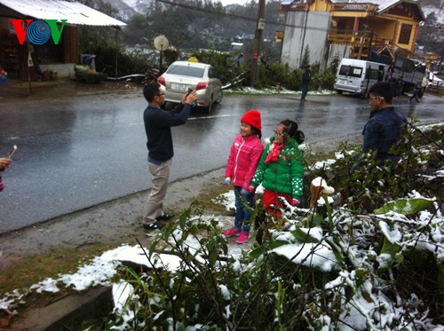 ដោយទទួលបានព័ត៌មានព្រិលថាព្រិលធ្លាក់នៅ Sa Pa នាយប់ថ្ងៃទី៩មករា ភ្ញៀវទេសចរណ៍ជាច្រើននាក់មកពីហាណូយនិងខេត្តក្រុងនានាបានទៅទស្សនា