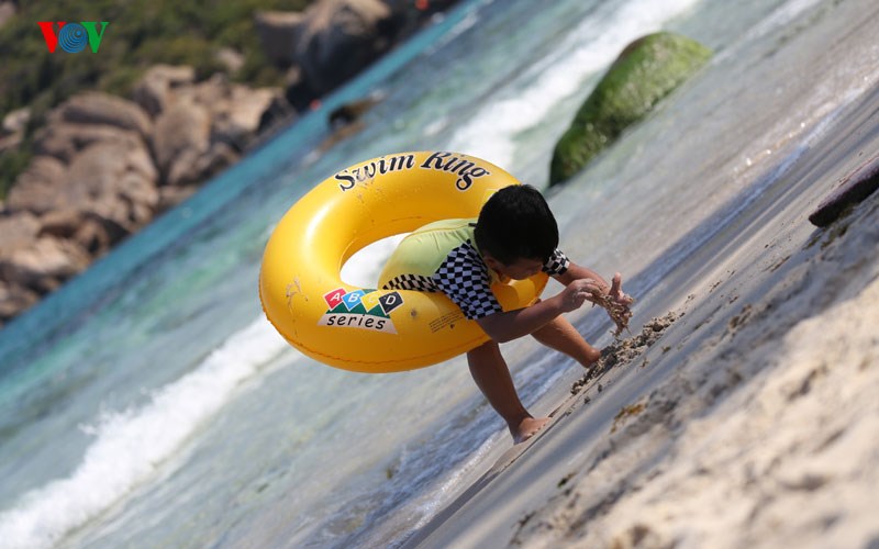 ភ្ញៀវទេសចរណ៍មុជទឹកកំសន្តលើឆ្នេរសមុទ្រ Binh Ba។