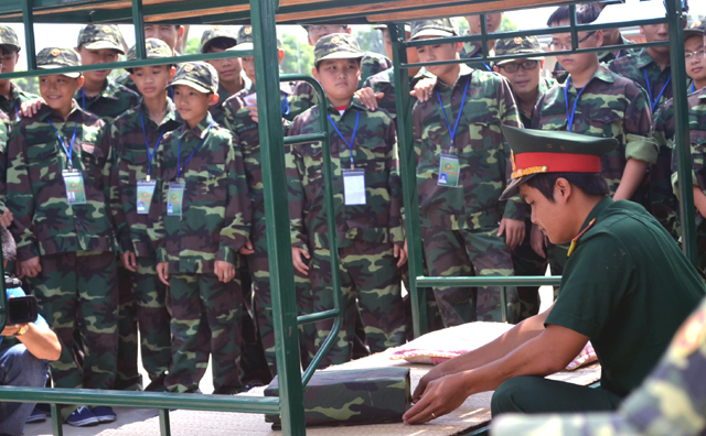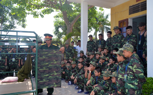 នេះ ប្អូនៗនឹងបំប៉នចំណះដឹងអំពីកិច្ចការពារប្រទេសសន្តិសុខអប់រំនយោបាយសតិអរម្មណ៍ ប្រពៃណីវីរជនរបស់កងទ័ពប្រជាជនវៀតណាមនិងចូលរួមដំណើរទស្សនានៅកោះសមុទ្រ។ ក្រៅពីនោះសិក្ខាកាមក៏បានចូលរួមសកម្មភាពវប្បធម៌ហ្វឹកហាត់តាមក្រុមនិមួយៗ ជួយ