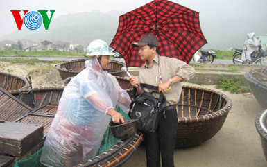 | អ្នកកាសែត Phan Thanh Ha កំពុងធ្វើការនៅដំបន់ទឹកជំនន់ (VOV) |