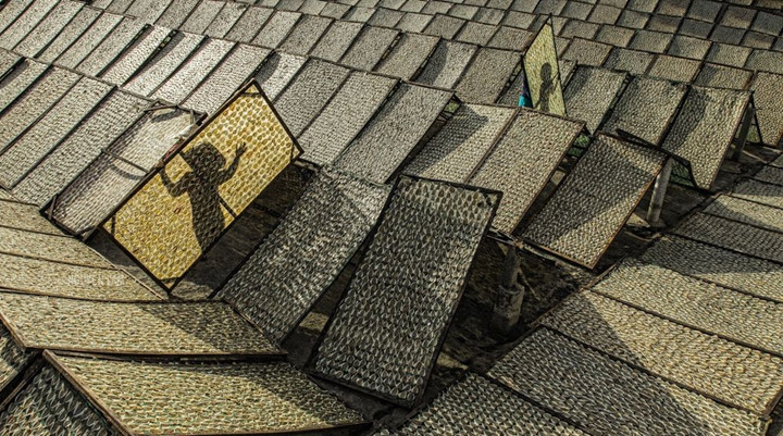 | ប្រជាជនហាលត្រីក្រោមពន្លឺព្រះអាទិត្យ។ ខេត្ត Kien Giang រួមជាមួយខេត្តមួយចំនួន នៅតំបន់វាលសណ្តទន្លេ Cuu Long ដើរតួនាទីសំខាន់ក្នុងផ្នែកនេសាទជលផលរបស់ វៀតណាម។ វណ្ណកម្មនេះត្រូវបានជ្រើសរើសនាថ្ងៃទី ១៩ វិច្ឆិកា ក្នុងនាទី Your Shot. រូបថត៖ Nguyen Lam. |