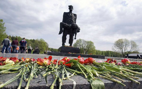 ដាក់កម្រងផ្កានៅផ្នូរយុទ្ធជនពលីអនាមិក នៅក្បែរជញ្ជាំងវិមានក្រែមឡាំង ស្តូប