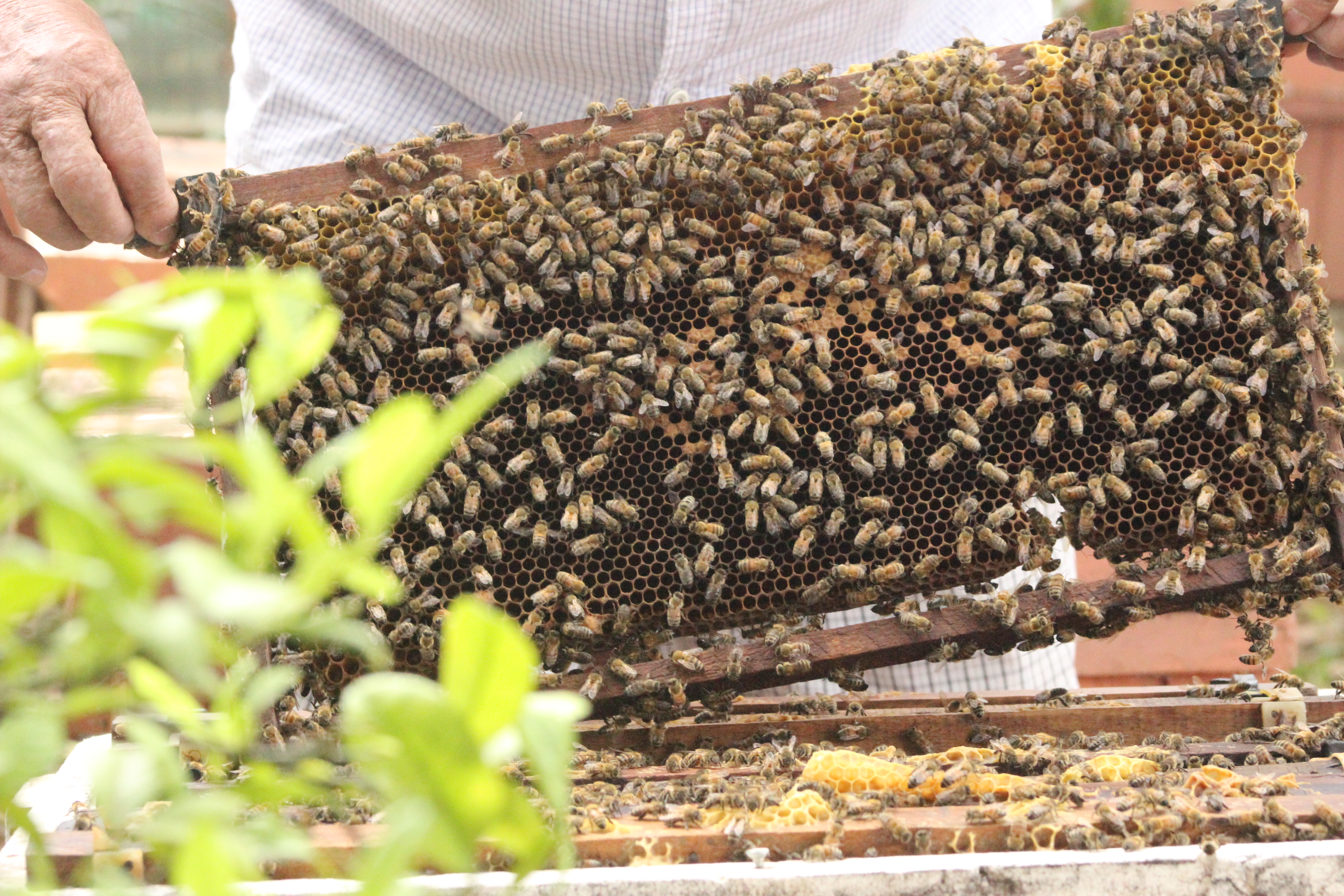 យើងខ្ញុំបានជួបជាមួយលោក Ho Van Sam នៅពេលដែលលោកកំពុងត្រួតពិនិត្យមើលសម្បុកឃ្មុំ។ គួរឱ្យភ្ញាក់ផ្អើលមែនដោយកាលនោះ ឃ្មុំរាប់ពាន់ក្បាលកំពុងហោះជុំវិញដើម្បីការពារសម្បុករបស់ខ្លួន ថ្វីត្បិតតែលោក Sam មិនបានពាក់ខោអាវការពារហើយគាត់គ្រាន់តែស្លៀកពាក់សម្លៀកបំពាក់ធម្មតា ប៉ុន្តែ ឃ្មុំមិនទិចគាត់ឡើយ។ គាត់បានសំណេះសំណាលថា៖ ដោយសារ ឃ្មុំទាំងនេះ គាត់បានចិញ្ចឹមតាំងពីយូរណាស់ មកហើយ បានជាពួកវាស្គាល់ម្ចាស់ហើយវាមិនប៉ះពាល់ដល់អ្នកថែទាំរបស់ខ្លួនទេ។