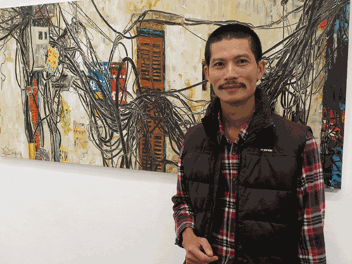 វិចិត្រករ Nguyen Ngoc Dan និងស្នាដៃគំនូរបង្ហាញពីខ្សែភ្លើង