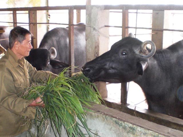ធ្វើការចិញ្ចឹមហ្វូងក្របីដោយអ៊ុំ Pham Van Dong ជូនប្រជាជនក្នុងគោលបំណងរួចពី