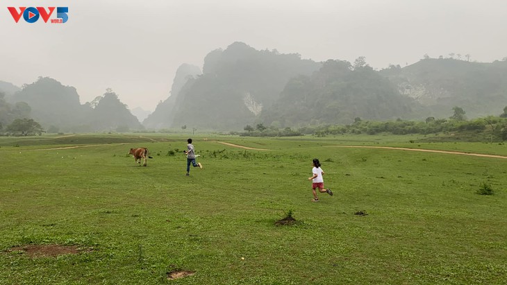 (VOVWORLD) - អញ្ជើញមកដល់វាលស្មៅ Dong Lam ភ្ញៀវទេសចរនឹងមានអារម្មណ៍រីករាយគយគន់ភ្នំថ្មកំបោរដ៏អស្ចារ្យ រហូតដល់វាលស្មៅដ៏ធំល្វើងល្វើយនិងហ្វូងគោនិងហ្វូងសេះកំពុងស៊ីស្មៅច្ចីយ៉ាងត្រៀបត្រា។