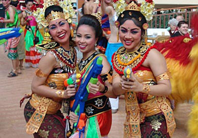 ជនរួមជាតិខ្មែរអំណរទទួលបុណ្យចូលឆ្នាំថ្មីដោយទំនៀមទំលាប់ជះទឹកទៅលើគ្នា ជូនពរឲ្យឆ្នាំថ្មីមួយមានអាកាសធតុអំណោយផល រួចចាក់ពីទុក្ខគ្រោះចង្រៃក្នុងឆ្នាំ