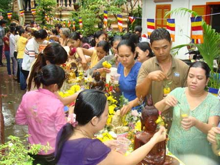 ក្រៅពីនោះ នៅខ័ណ្ឌទី ៣ ទីក្រុងហូជីមិញ ប្រព្រឹត្តទៅពិធីស្រង់ទឹកព្រះនៅវត្ត