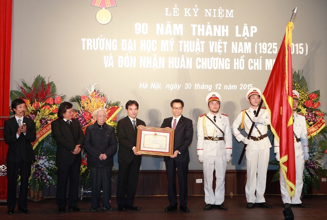 | ឧបនាយករដ្ឋមន្ត្រីលោក Vu Duc Dam ប្រគល់ គ្រឿងឥស្សរិយយសហូជីមិញជូនសាកលវិទ្យាល័យវិចិត្រ សិល្បៈវៀតណាម(រូបថតៈ dangcongsan.vn) |