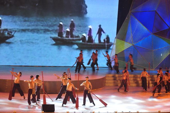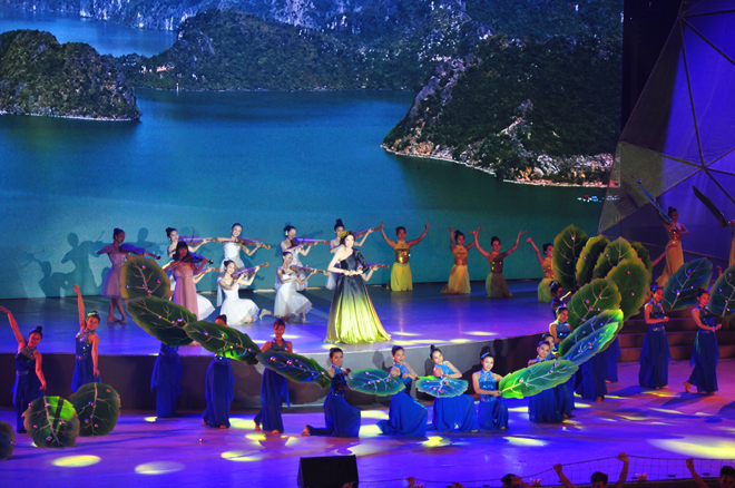 | ក្នុងកម្មវិធីសំដែងបានបង្ហាញរម្មណីដ្ឋានទេសចរណ៍ជាច្រើននៃទីក្រុង Ha Long រួមជាមួយអត្តសញ្ញាណវប្បធម៌នៃតំបន់ផ្សេងៗនៅខេត្ត Quang Ninh។ |