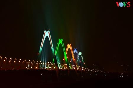 ស្ពាន Nhat Tan ត្រូវបានបំពាក់ប្រព័ន្ធភ្លើងទំនើបនិងចម្រុះព័ណ៌។
