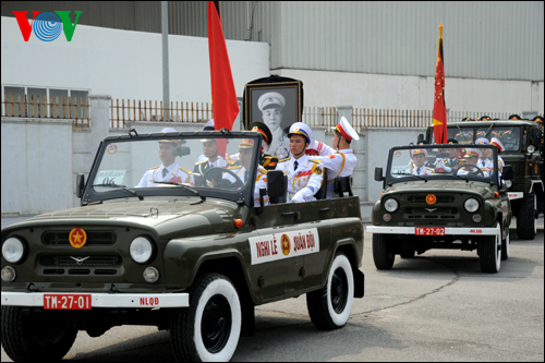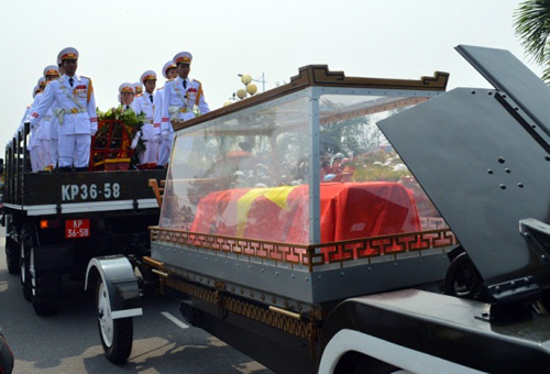 ![]() ឡានដឹកមឈូសនាយឧត្តមសេនីយ៍Vo Nguyen Giap ចាកចេញពីសាលបុណ្យសព |