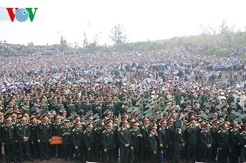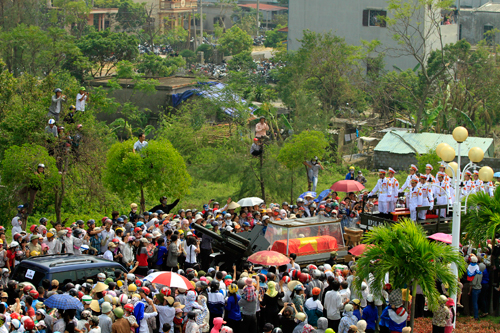 ![]() មនុស្សជាច្រើនកុះករមកចូលរួមពិធីបញ្ចុះសពនាយឧត្តមសេនីយ៍ Vo Nguyen Giapនៅ Vung Chua។ |