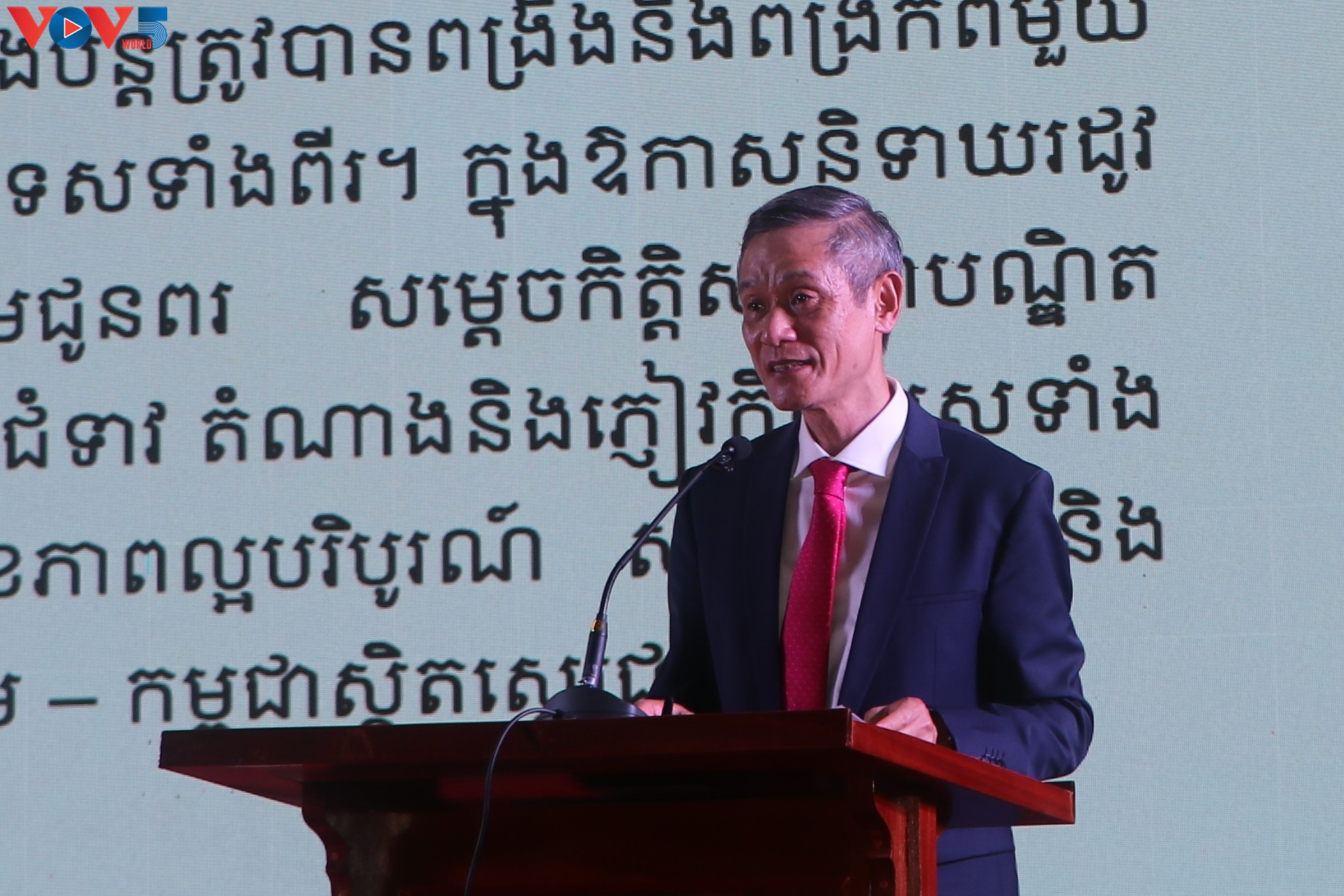 ថ្លែងនៅក្នុងពិធីនេះ ឯកអគ្គរដ្ឋទូតវៀតណាមប្រចាំនៅកម្ពុជា លោក ង្វៀន មិញ វូ បានសង្កត់ធ្ងន់លើព្រឹត្តិការណ៍ប្រវត្តិ សាស្ត្រ នៅពេលដែលបន្ទាប់ពីមហាសន្និបាតលើកទី ១៤ របស់បក្សកុម្មុយនិស្តវៀតណាម អគ្គលេខាគណៈកម្មាធិការមជ្ឈិម បក្សកុម្មុយនិស្តវៀតណាម លោក តូ ឡឹម បានជ្រើសរើសកម្ពុជា ជាប្រទេសមួយក្នុងចំណោមប្រទេសដំបូងគេ សម្រាប់ដំណើរទស្សនកិច្ចផ្លូវរដ្ឋ។ នេះ គឺជាភស្តុតាងច្បាស់លាស់ដែលបង្ហាញថា "ទំនាក់ទំនងអ្នកជិតខាងល្អ មិត្តភាពជាប្រពៃណី" រវាងប្រទេសទាំងពីរកំពុងបើកចេញជំពូកថ្មីមួយ។