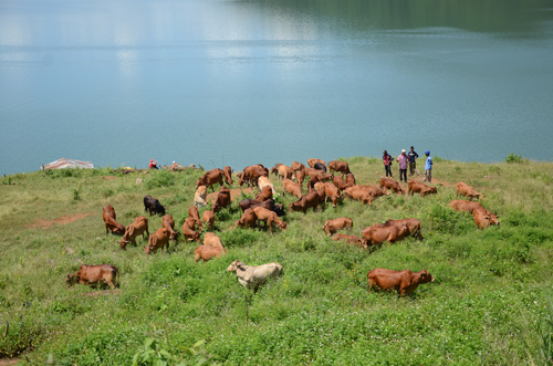 ប្រជាជនក្នុងភូមិជំរុញការងារបង្កបង្កើនផល។ ជាក់ស្ដែងគឺហ្វូងគោនៅក្នុងភូមិ