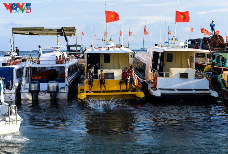 ![]() កាណូតទេសចរណ៍ទំនើបៗត្រូវបានដំឡើងជាច្រើន ដើម្បីជួយឲ្យភ្ញៀវទេសចរមានអារម្មណ៍ផាសុខភាព ហើយជួយឲ្យកាត់បន្ថយពេលវាលាធ្វើដំណើរវាង Ly Son ដីគោកយ៉ាងងាយស្រួ ល |