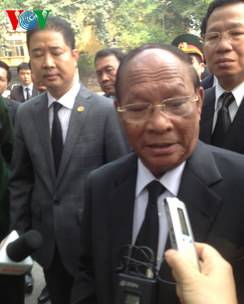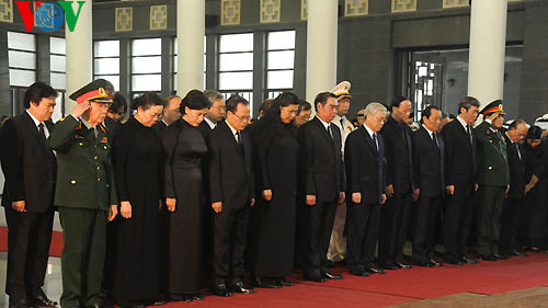 | ថ្នាក់ដឹកនាំបក្សរដ្ដ្ឋរដ្ឋាភិបាលគោរព វិញ្ញាណក្ខន្ធ នាយឧត្តមសេនីយ៍ Vo Nguyen Giap(រូបថត VOV) |