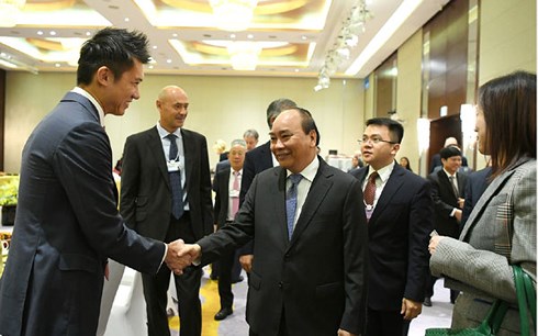 នៅក្នុងជំនួបសន្ទនានេះ ថ្នាក់ដឹកនាំនៃសម្ព័ន្ធក្រុមហ៊ុនសកលមួយចំនួនដូចជា៖ Apple Google Standard Chartered Facebook General Electrics Hitachi Thaibev Temasek Novatis និង Bloomberg គឺសុទ្ធតែវាយតម្លៃខ្ពស់ចំពោះយថាទស្សន៍អភិវឌ្ឍន៍សេដ្ឋកិច្ចរបស់វៀតណាម ក៏ដូចជាការខិតខំប្រឹងប្រែងរបស់រដ្ឋាភិបាលក្នុងការធានាបរិយាកាសធ្វើអាជីវកម្ម ប្រកបដោយស្ថិរភាព ងាយស្រួល។ យល់ព្រមចំពោះការសន្យារបើកទូលាយការវិនិយោគនៅវៀតណាមរបស់វិនិយោគិន ក្នុងនោះមានសម្ព័ន្ធក្រុមហ៊ុន Thaibev នោះ នាយករដ្ឋមន្រ្តី Nguyen Xuan Phuc បានឲ្យដឹងថា៖