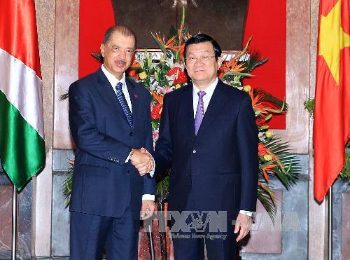 (VOV)_ទទួលសេចក្ដីអញ្ជើញរបស់ប្រធានរដ្ឋវៀតណាម លោក Truong Tan Sang ប្រធានាធិបតីសាធារណះរដ្ឋសេសែល លោក James Alix Michel បានមកបំពេញទស្សនកិច្ចជាផ្លូវការនៅវៀតណាម ពីថ្ងៃទី២៨ ដល់ថ្ងៃទី ២៩ សីហា។ នាព្រឹកថ្ងៃទី ២៨ សីហា បន្ទាប់ពីពិធីទទួលជាផ្លូវការ នៅទីក្រុងហាណូយ លោកTruong Tan Sang និង លោក James Alix Michel បានដំណើការចរចារ។ ស្ដីពីទំនាក់ទំនងទ្វេភាគិ ភាគីទាំងពីរបានសម្ដែងនុវការពេញចិត្តចំពោះការអភិវឌ្ឍន៍ទំនាក់ទំនងលើច្រើនវិស័យ រវាងប្រទេសទាំងពីរ ក្នុងរយះពេលលកន្លងទៅ និងថ្នាក់ដឹកនាំទាំងពីររូបក៏បានឯកភាពថា÷នឹងបញ្ជាណែនាំគ្រប់ក្រសួង ស្ថាប័នទាក់ទិននៃប្រទេសទាំងពីរ បន្តសកម្មអនុវត្តរាល់វិធានការសហប្រតិបត្តិការជាក់ស្ដែងក្នុងរយះពេលខាងមុខ ដូចជា÷វិនិយោគ ទេសចរណ៍ កសិកម្ម…ជាដើម។
