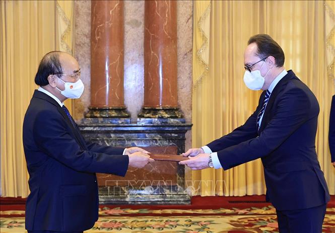 ប្រធានរដ្ឋលោក Nguyen Xuan Phuc អញ្ជើញទទួលសារតាំងពីឯកអគ្គរដ្ឋទូតឈីលី លោក Patricio Becke (រូបថត៖ TTXVN) |