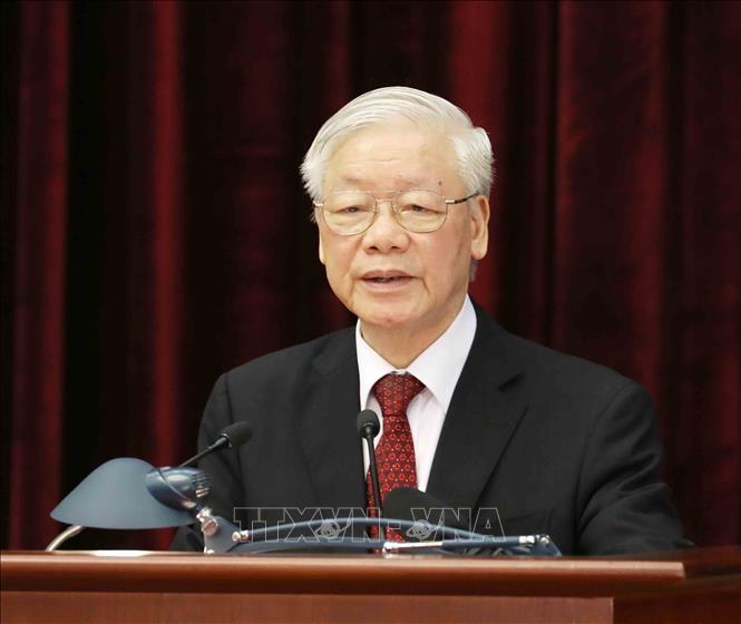 អគ្គលេខាបក្ស ប្រធានរដ្ឋ លោក Nguyen Phu Trong អញ្ជើញថ្លែងមតិក្នុងពិធីបិទបញ្ចប់សន្និសីទលើកទី ២ នៃគណៈកម្មាធិការមជ្ឈិមបក្ស នីតិកាលទី ១៣ (រូបថត៖ TTXVN) |