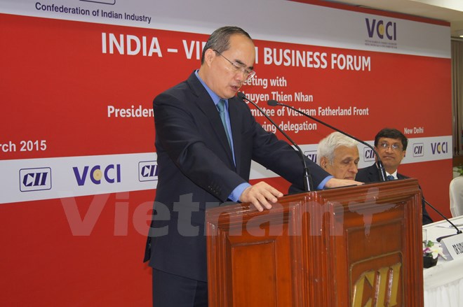 | លោក Nguyen Thien Nhan ថ្លែងមតិនៅវេទិការអង្គភាពអាជីវកម្មឥណ្ឌា វៀតណាម (រូបថត៖TTXVN) |