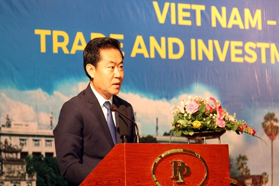 ចែករំលែកជាមួយសហគ្រាសនានាដែលចូលរួមវេទិកានេះ លោក Vu Quang Minh ឯកអគ្គរដ្ឋទូតវៀតណាមប្រចាំនៅកម្ពុជា បានលើកច្បាស់អំពីភាពងាយស្រួលនៃបរិយាកាសធ្វើអាជីវកម្ម វិនិយោគនៅកម្ពុជា។