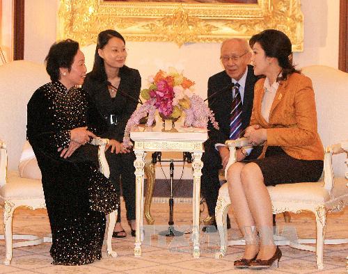 | អនុប្រធានរដ្ឋមវៀតណាម Nguyen Thi Doan និងប្រធានាធិបតីថៃ Yingluck Shinawatra (Image: VOV online) |