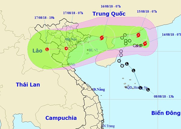 베빈카 태풍, 베트남 꽝닌 성에서 남딘 성까지 상륙 가능