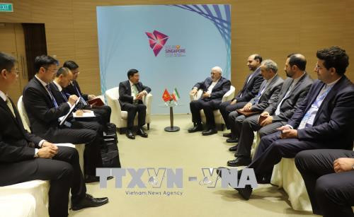 (VOVWORLD) - Pham Binh Minh 부총리 겸 장관은 오늘 오후 쌍방 협력을 논의하고 다방포럼에 공통 관점을 나누기 위해 AMM 51회의와 별도로 Taro Kono 일본 외무장관 및 Mohammad Javad Zarif 이란 외무장관과 회합했다.