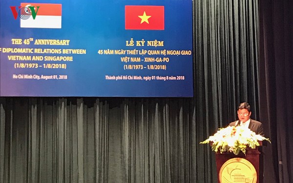 (VOVWORLD) - 7월 31일 싱가포르를 공식 방문중인 Pham Binh Minh 부총리는 Vivian Balakrishnan 싱가포르 외무부장관과 만남을 가졌다. 양측은 세계 및 지역 포럼, 특히 아세안에서의 협력을 지속할 것이라고 밝혔다. 부총리는 “자강과 창조”를 주제로 한 2018 ASEAN 의장국 싱가포르의 역할을 높이 평가했으며, 베트남은 회의에서 제의되는 모든 목표와 우선 과제들을 실현하는 데 있어서 싱가포르에 대한 지지와 협력을 약속했다.