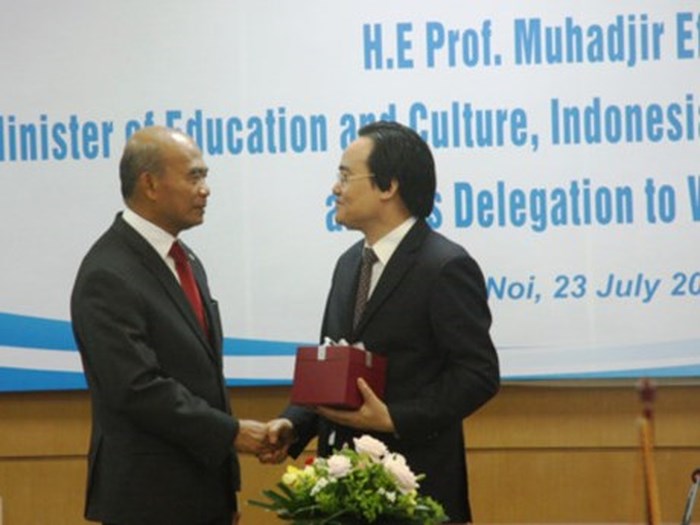 (VOVWORLD) - 7월23일 Phung Xuan Nha 교육훈련부 장관은 동남아 교육 장관위원회 위원장인 인도네시아문화교육부Muhadjir Efendy장관과 함께 베트남 및SEAMEO 회원국들간 또는 베트남 및 인도네시아간의 교육훈련에 대해 회담을 했다.