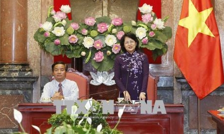 (VOVWORLD) - 7월23일 오전 주석궁에서 Dang Thi Ngoc Thinh 국가 부주석은 Thua Thien – Hue성 소수 민족 동포들 사이에서 신뢰받는 인사들의 대표단을 접견했다.
