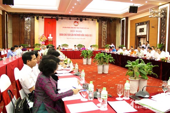 (VOVWORLD) - 7월5일 오전 Nghe An성 Vinh시에서 8기 14차 베트남 조국전선 중앙위원회 위원장단 회의를 개막했다. 동 회의 참석자로는 Truong Thi Mai중앙대중동원위원회 위원장이 있다.