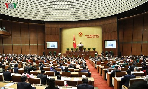 (VOVWORLD) - 6월 15일 오전에 하노이 수도의 국회 의사당에서 14차 국회는 제5차 회의 폐막식을 진행하였다. 폐막식 발표에서 Nguyen Thi Kim Ngan 국회의장은 이번 회의에서 국회가 7개의 법을 통과시킴으로써 2013년 헌법을 계속 체제화하여 안보, 국방보호, 국민의 기본책임 및 권한, 인권, 경제발전에 관한 법률 체계를 완성하였다고 밝혔다.