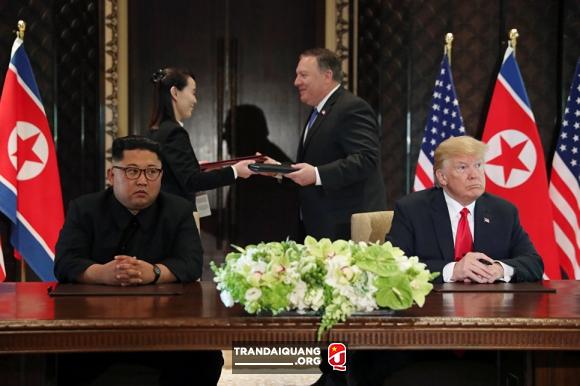 (VOVWORLD) - 6월12일 싱가포르에서 진행된 김정은 조선 지도자와 도달드 트럼프 미국 대통령간의 정상 회담은 양측 지도자가 합의서를 체결함으로써 정식적으로 종료되었다.