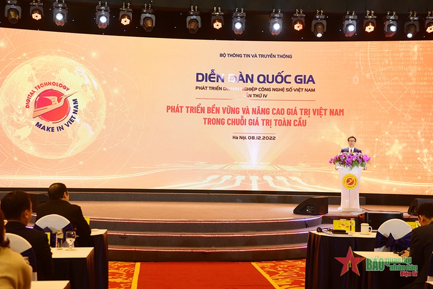 (VOVWORLD) - 12월 8일 하노이에서 정보통신부는 ‘지속가능한 발전 및 전 세계 가치사슬 내 베트남의 가치 향상’을 주제로 한 2022년 제4차 디지털 기술 기업 발전에 대한 국가 포럼을 개최했다. 포럼에는 수백 명의 전문가와 국내외 권위 있는 테크기업 및 베트남 내 IT분야 스타트업 대표자 등 1000명이 참여했다.