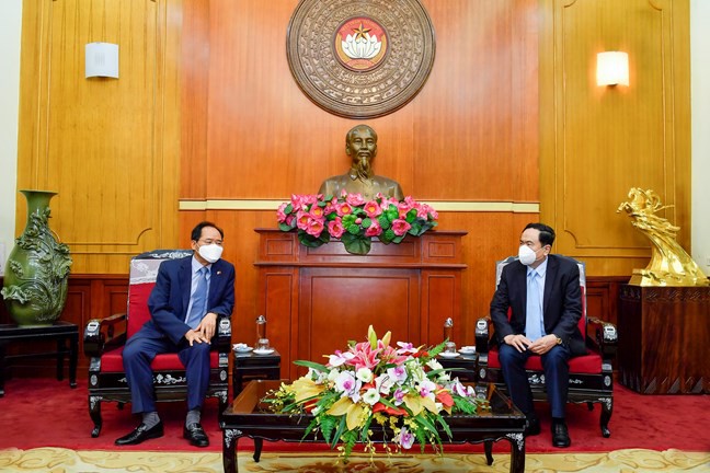 조국전선중앙위원회 쩐 타인 먼 위원장, 주베트남 한국대사로부터 50억 동 지원금을 전달받았다